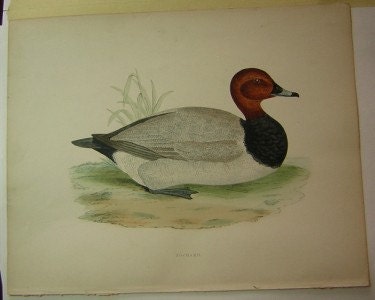 This engraving, Pochard, is in good condition and the bird is very accurately drawn and colored. The paper has overall age toning and some minor soiling. The size is approximately 10” x 11” and a copy of the title page is included.